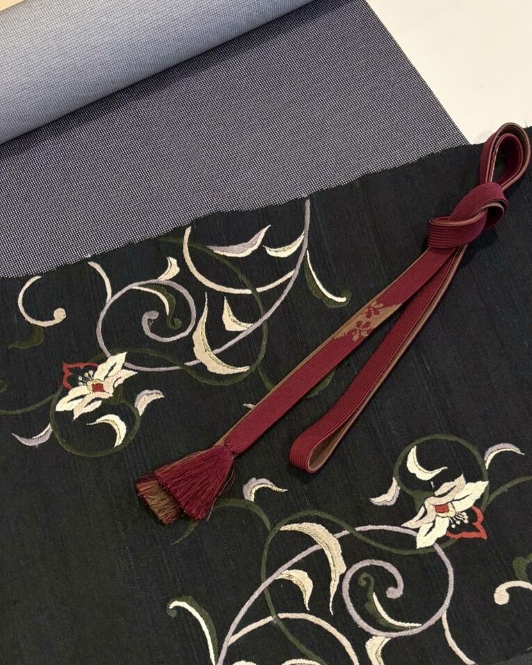 *縫一つ紋を入れる事もできます。お稽古事専用にお召しになる方におすすめです。お写真で糸見本を見ながら糸色を選んでいきます。ご希望のかたはお気軽にお問い合わせくださいませ。