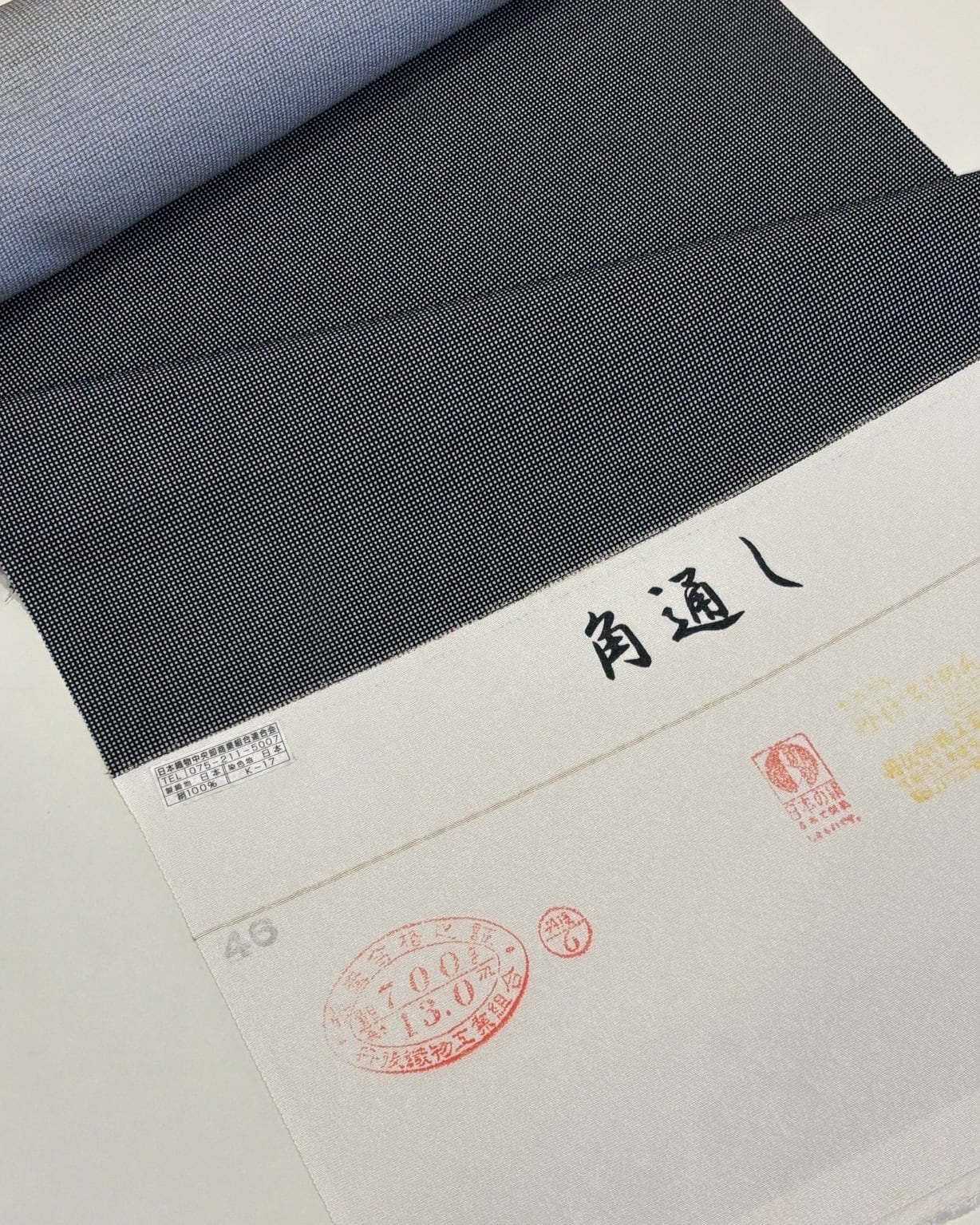 1000以上もあると言われる江戸小紋のうち、代表的な三役と呼ばれる柄のひとつが、この小さな正方形が規則正しく並んだこちらの「角通し」です。