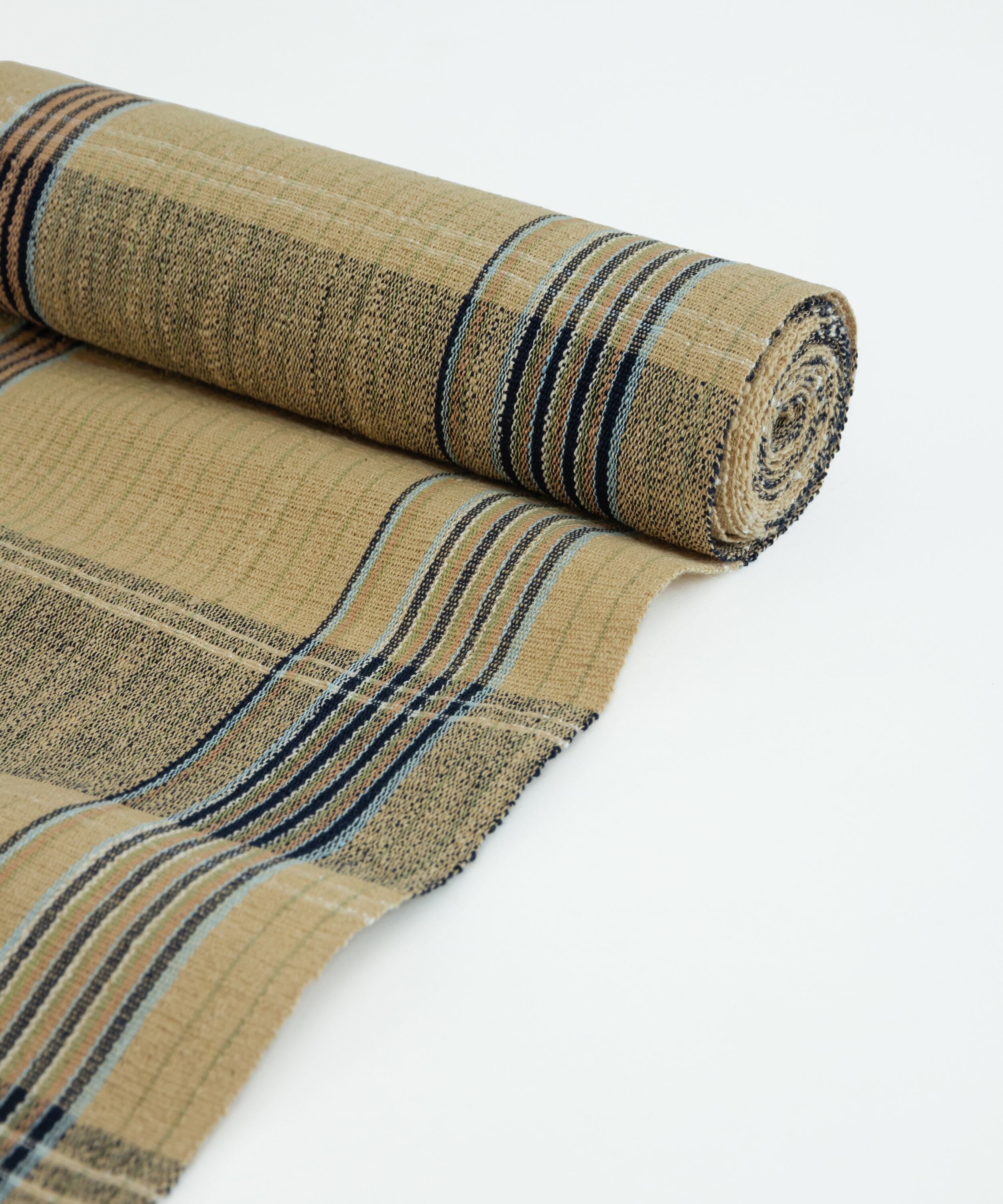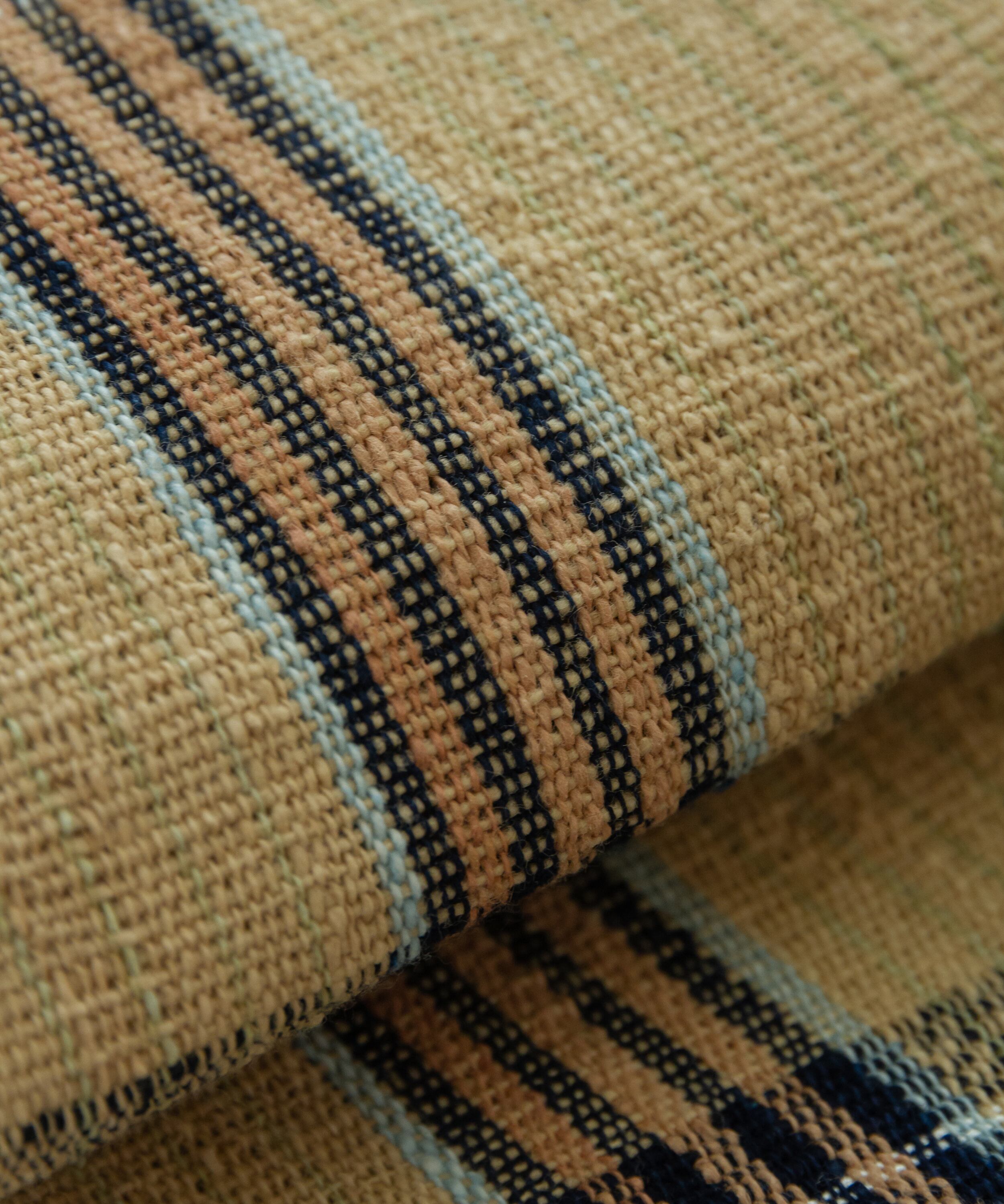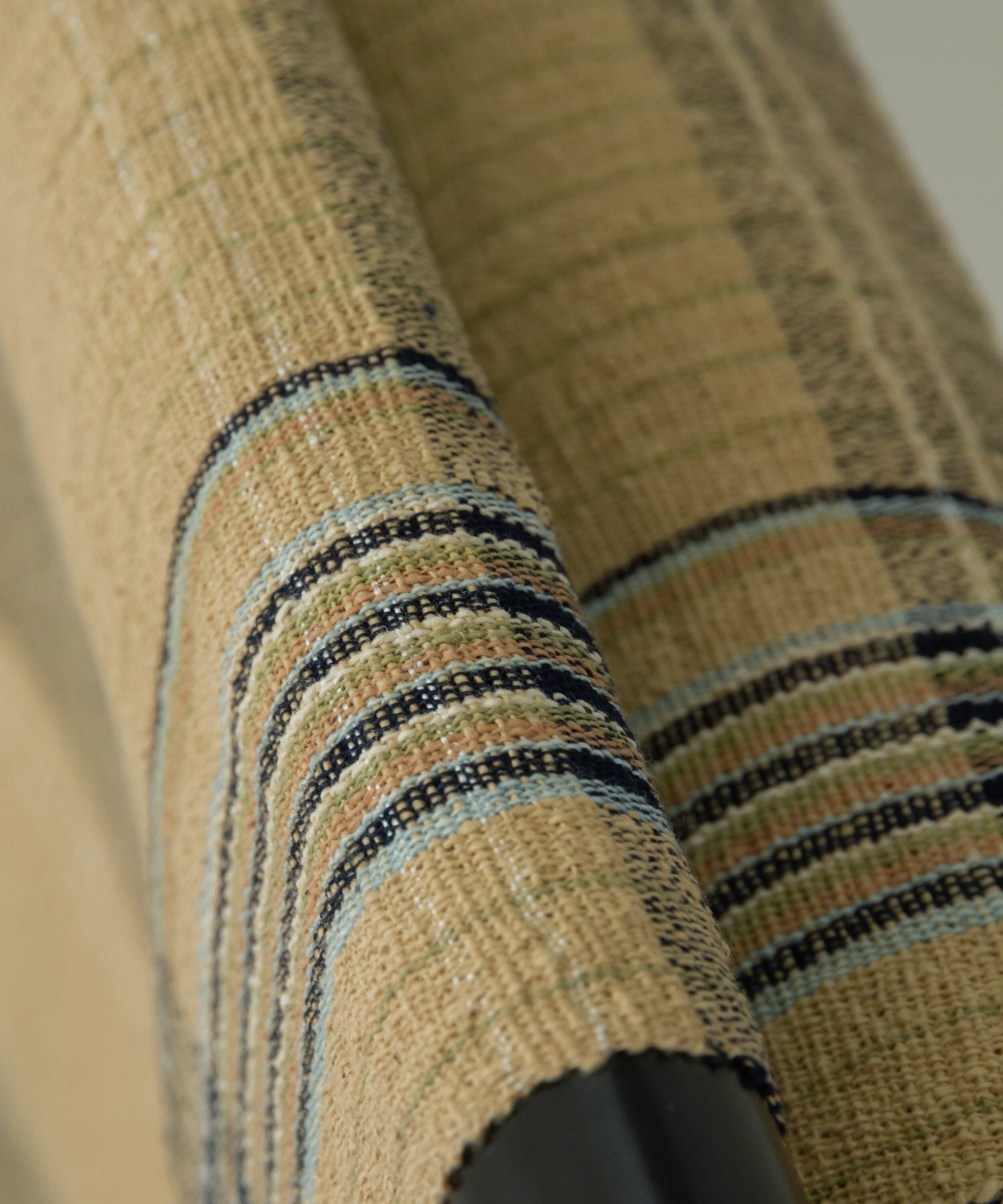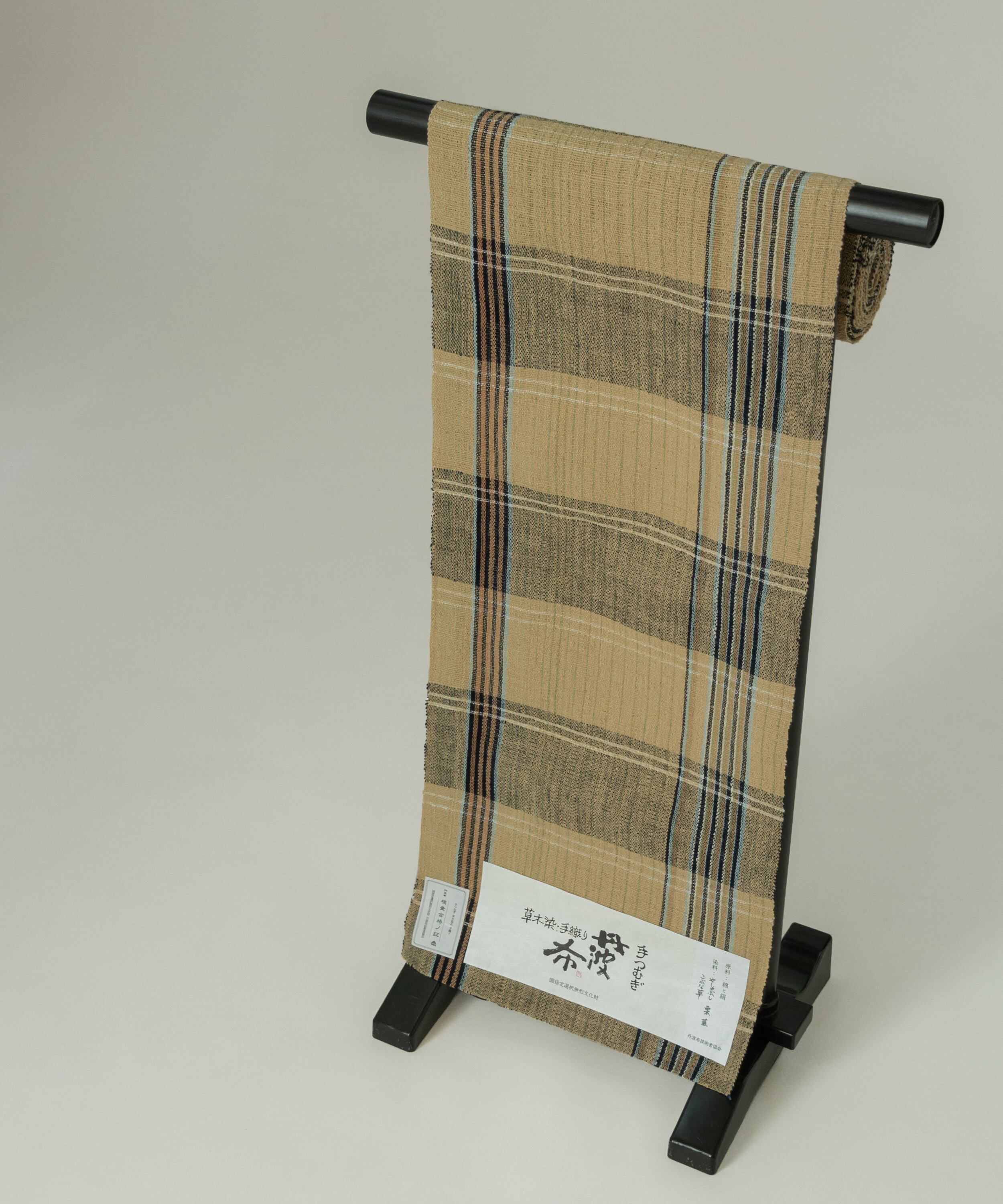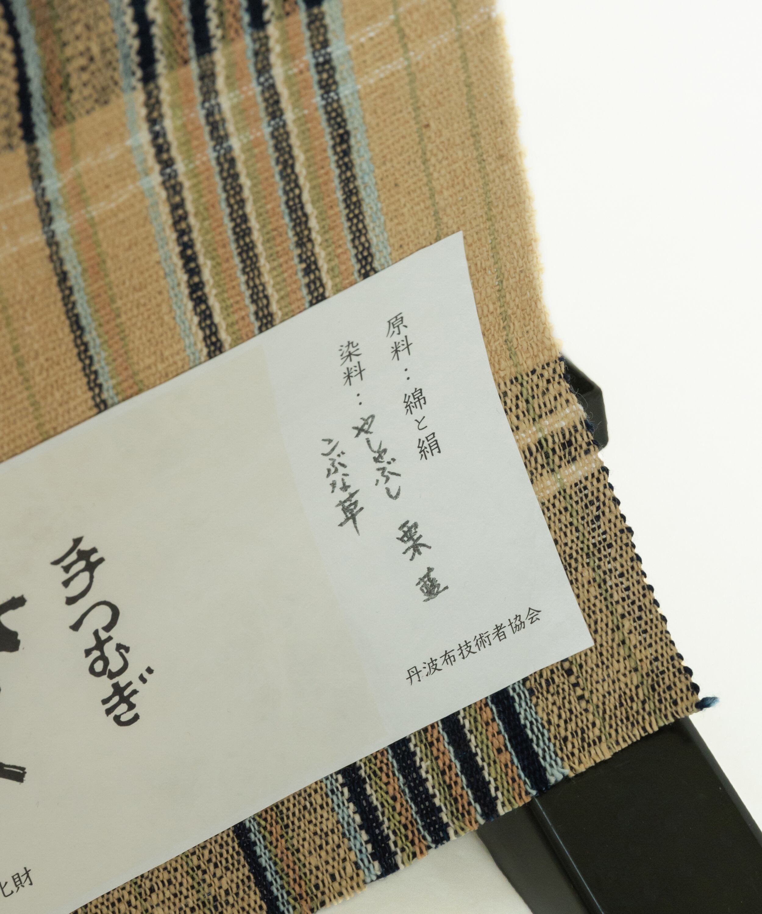 丹波布は昔ながらの技法で手紡ぎ、草木染め、手織りとすべての工程を一人の手作業で作られ、絹のつまみ糸を緯糸に入れます。このつまみ糸により、しなやかさと柄の表情にもつややかさが生まれます。