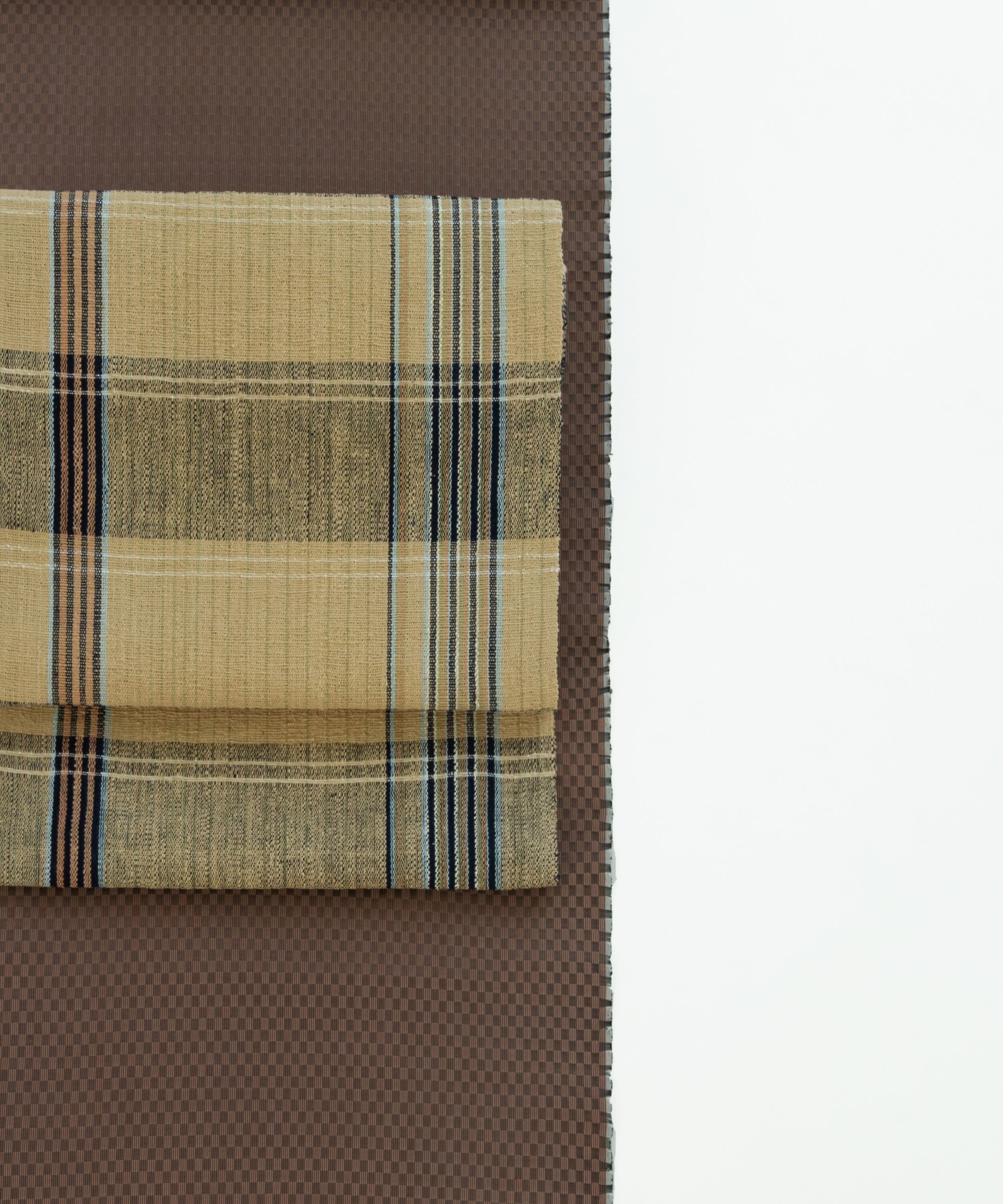 親shop sugioshopより、めゆ工房山下芙美子黄八丈綾織市松「焦げ茶」(4-5枚目)