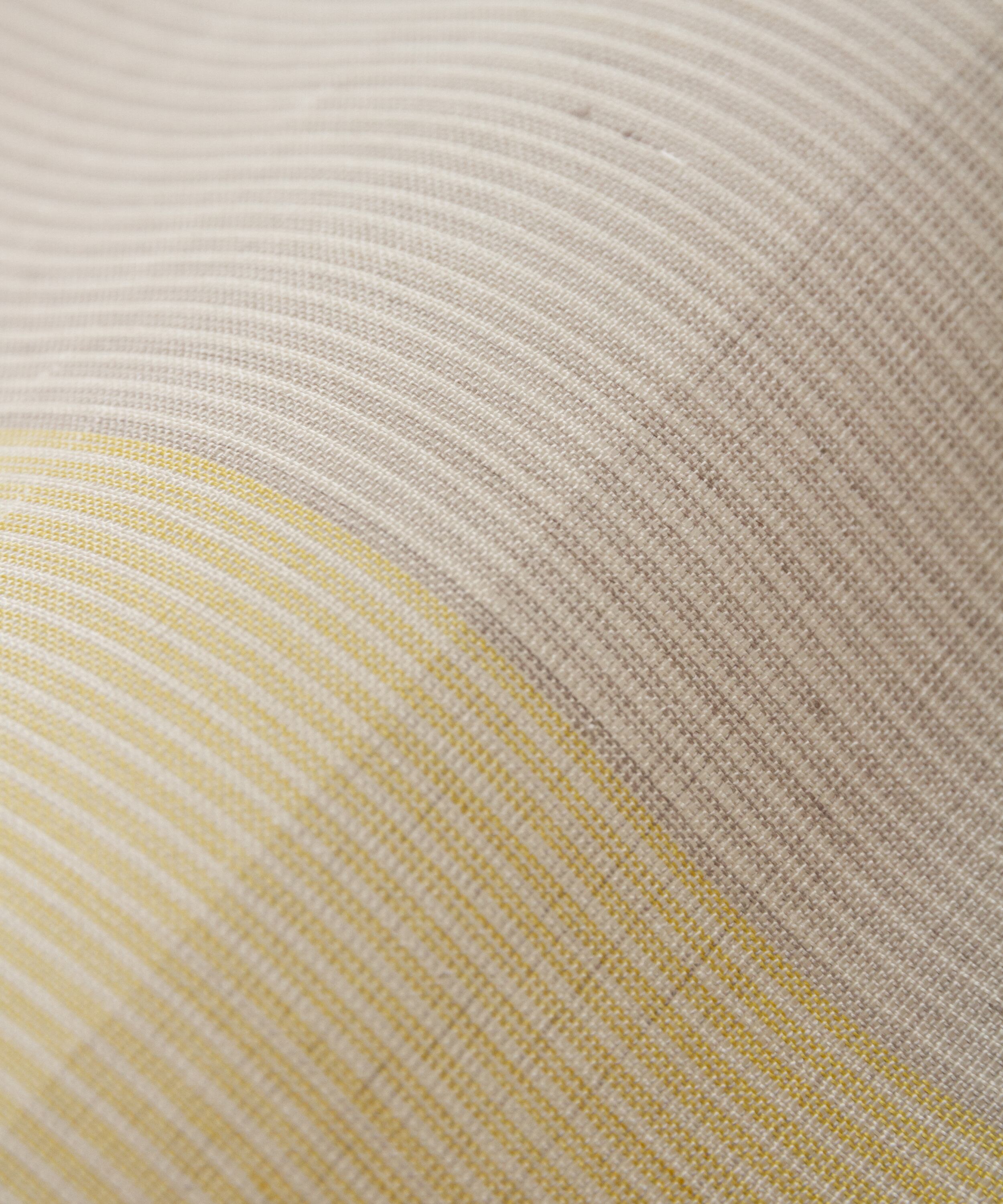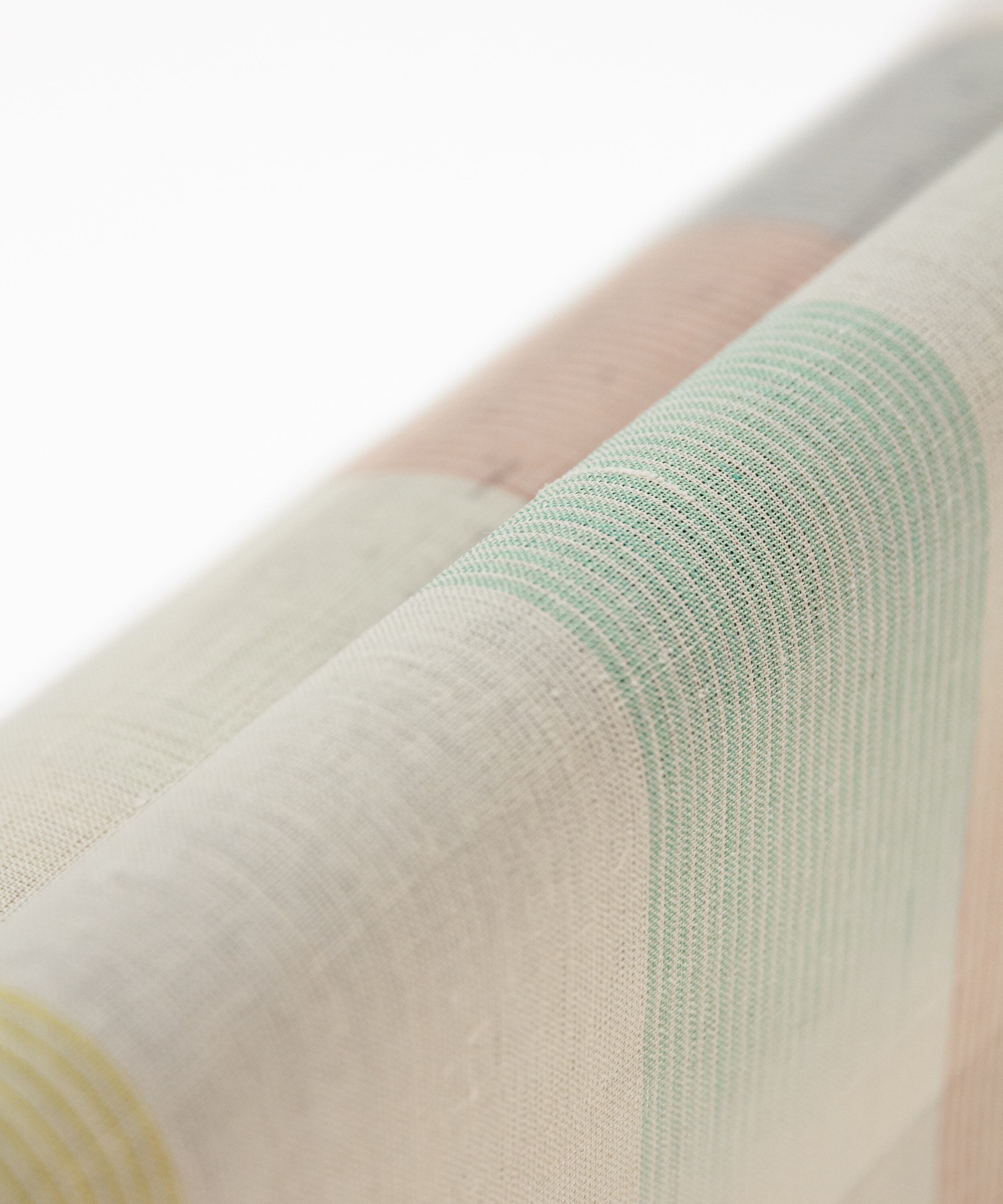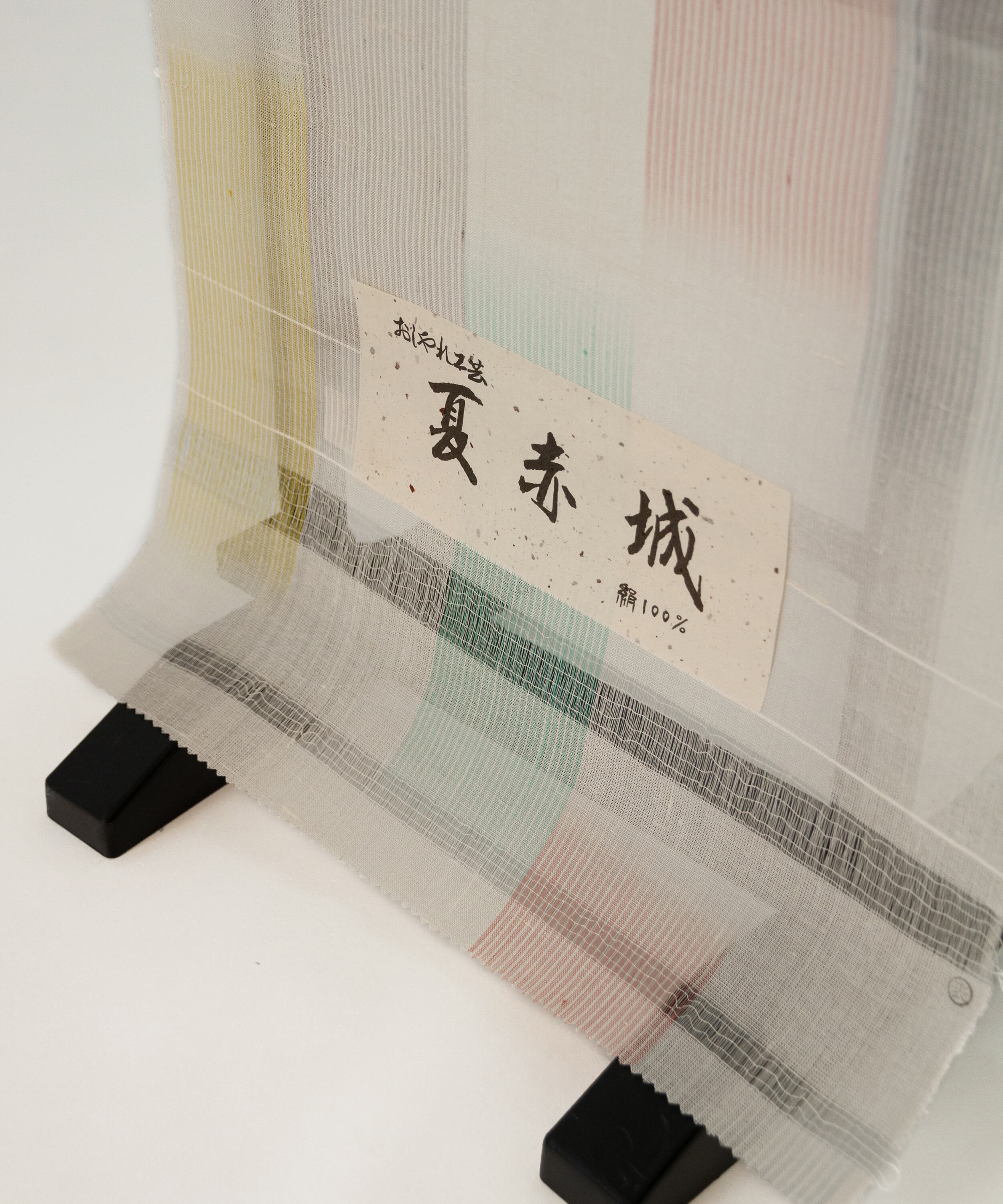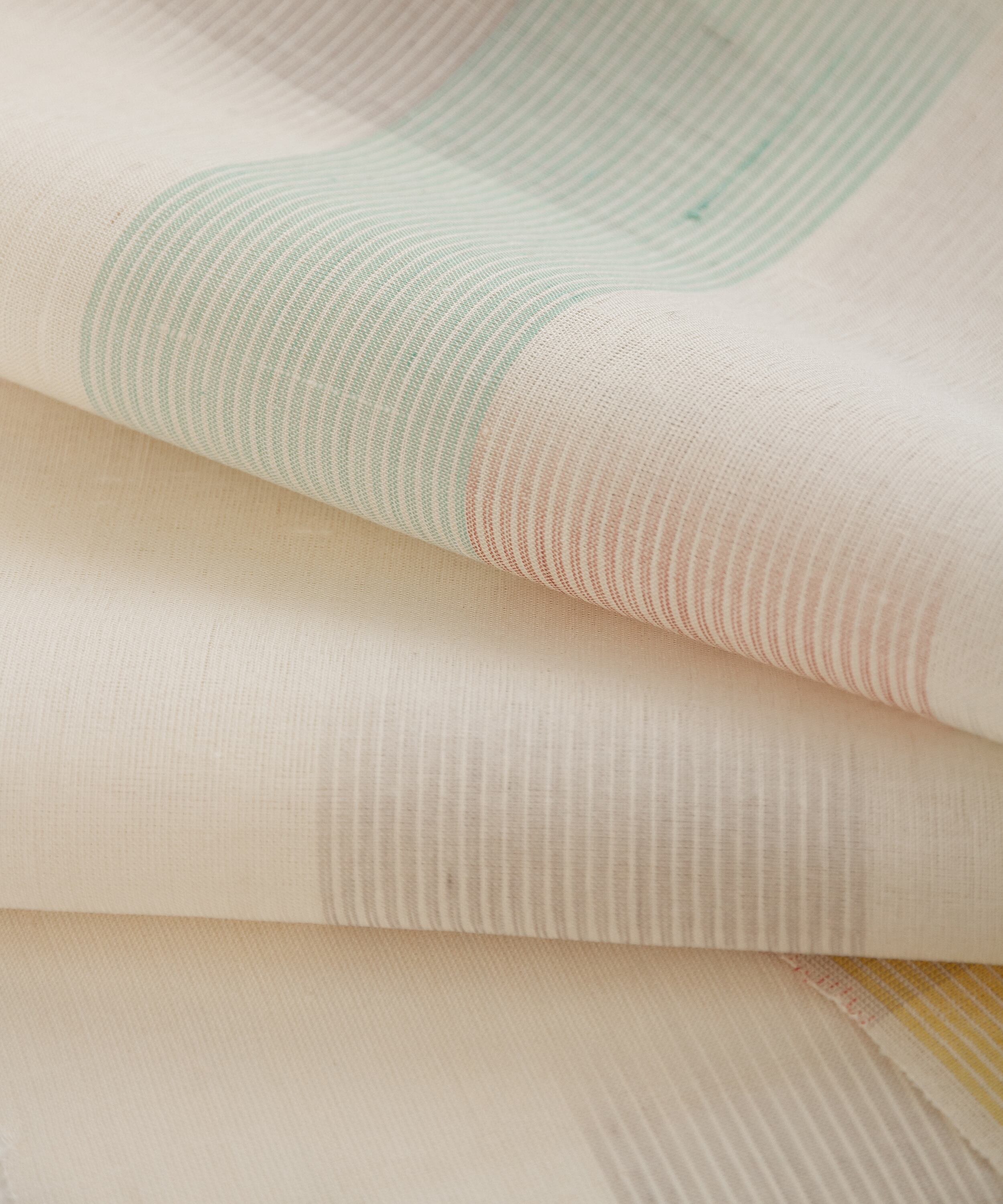 優しいベージュ地にレモンイエロー、ピンク、若草色、ブルー、グレーなどの優しい市松柄。夏赤城紬は、しっかりとした張りと柔らかさもあり肌との離れ感もちょうど良い夏のお召し物でございます。