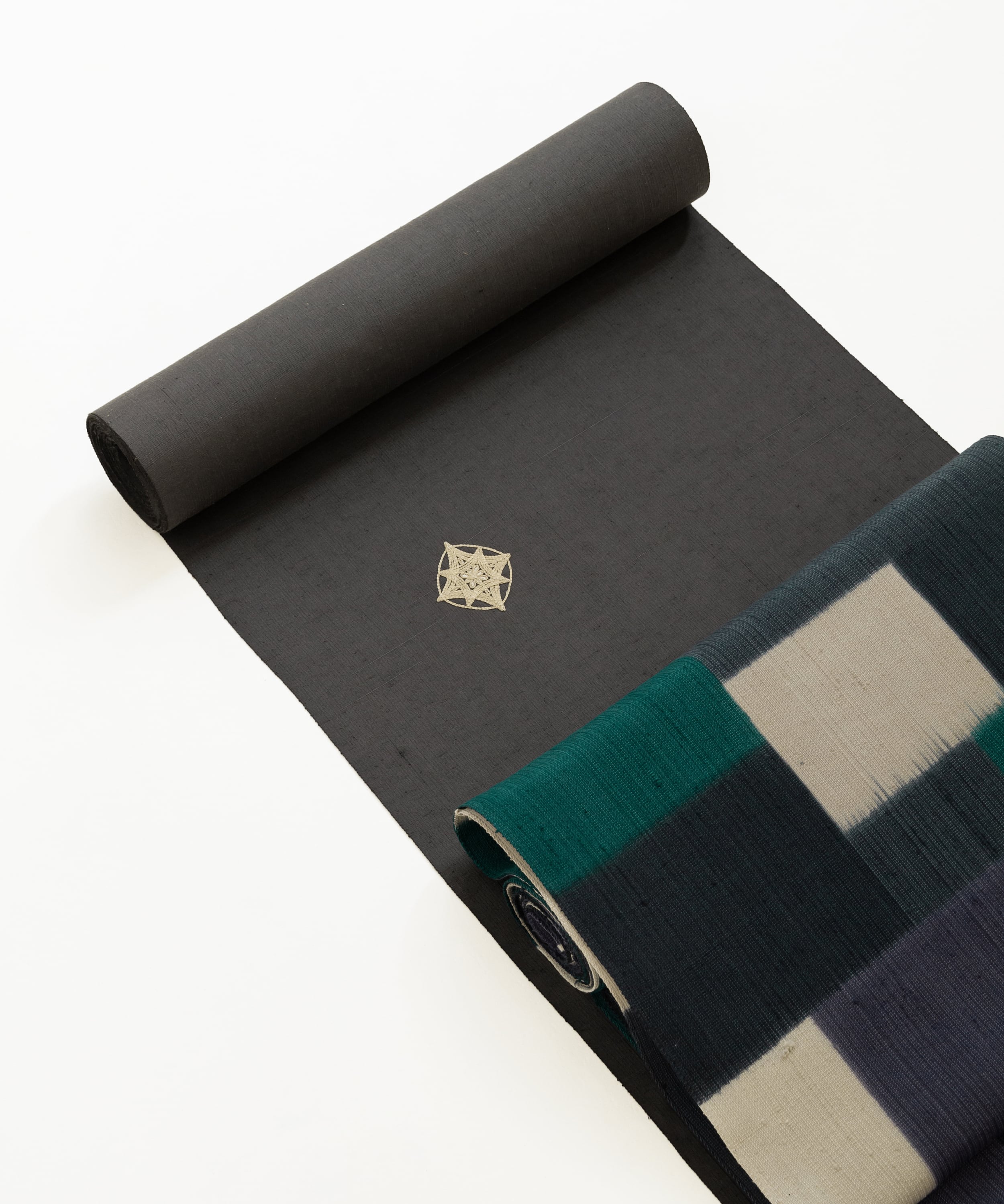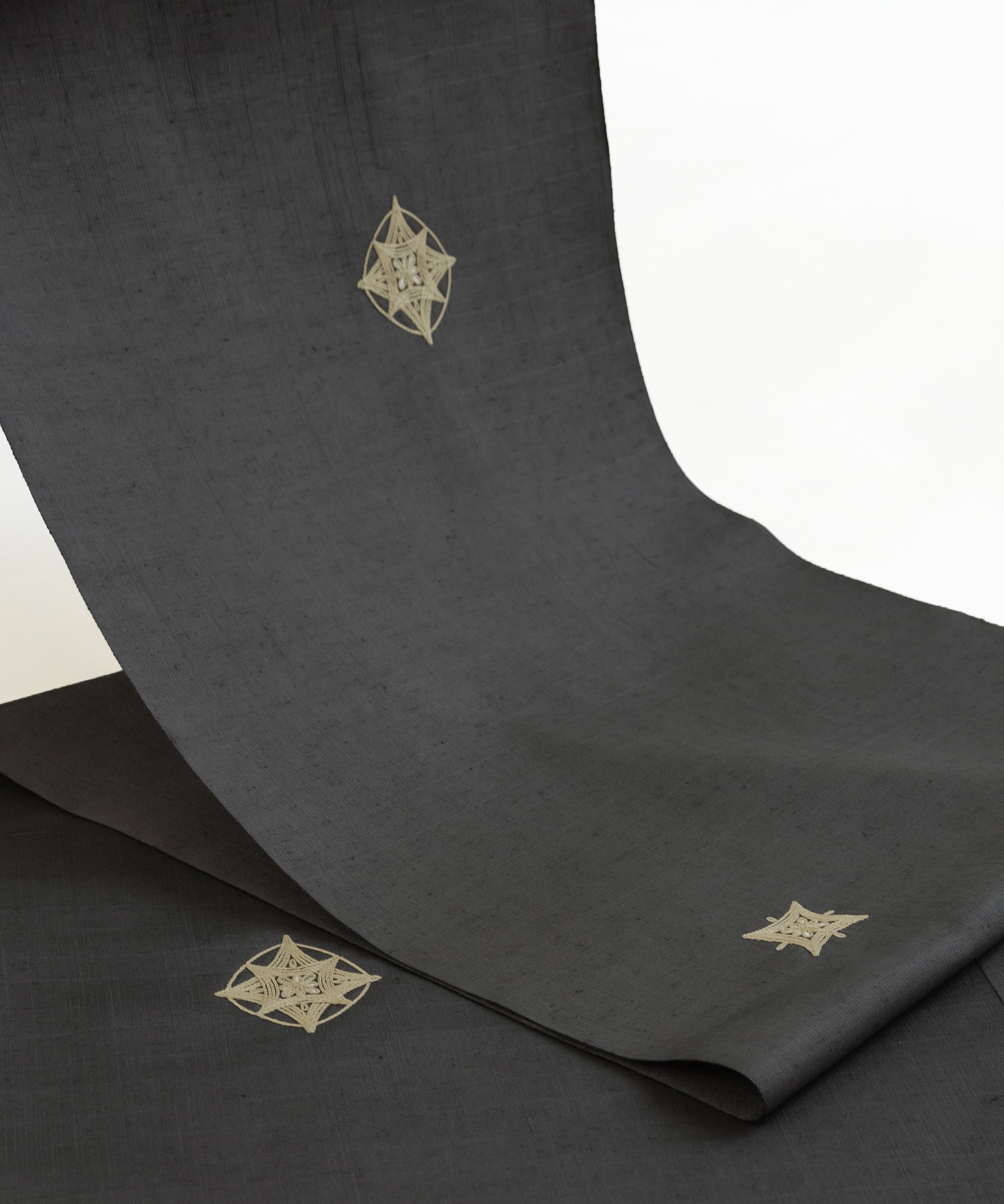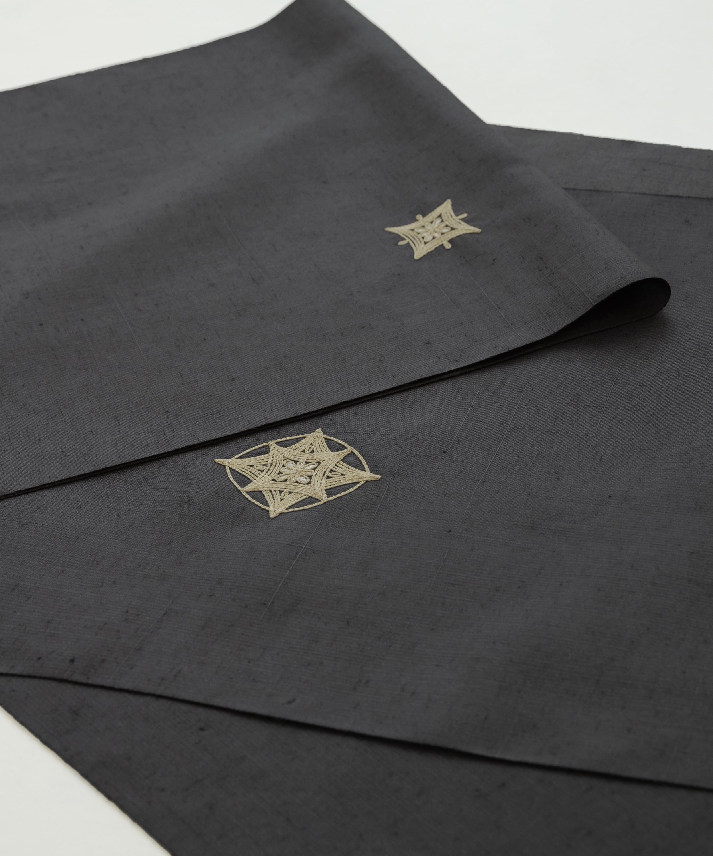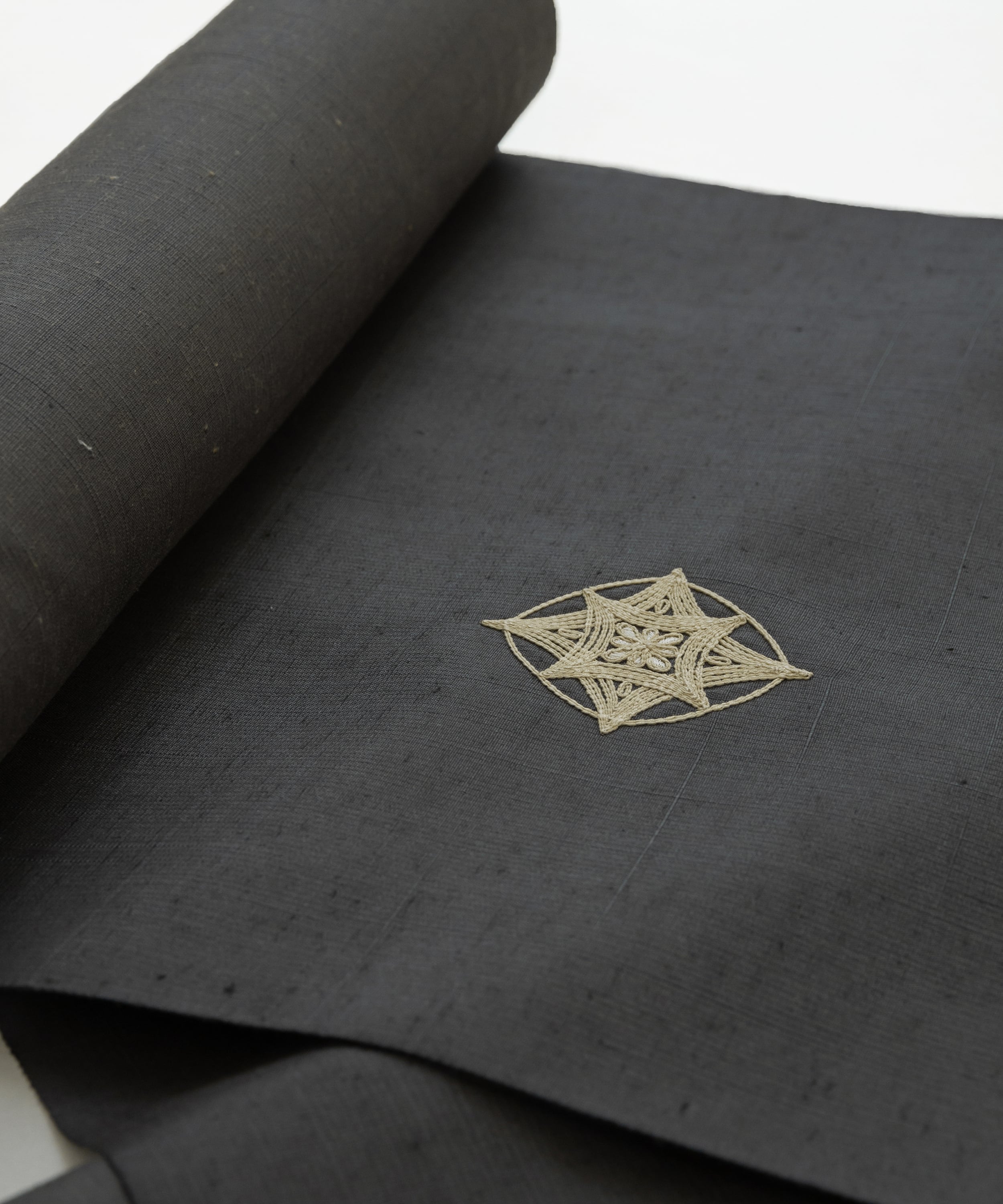 ムガシルク 刺繍着尺「深い灰色」